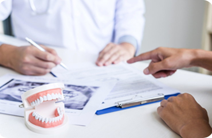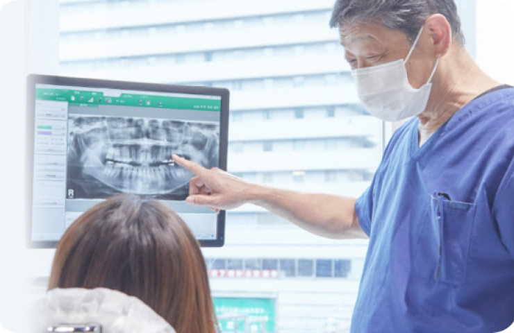 患者さまにご記入いただいた問診票の情報と、実際に口内を確認しての視診で、大まかな診断をお伝えします。現在の口内はどのような状態か、歯科学的に説明します。